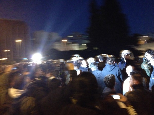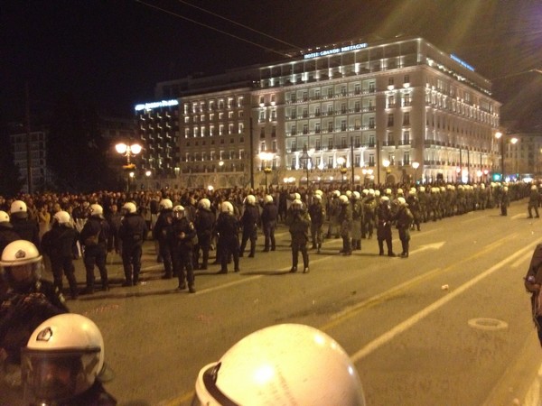 Οι άνδρες των ΜΑΤ έχουν φτάσει αυτή την ώρα επί της λεωφόρου Αμαλίας και απωθούν βίαια τους συγκεντρωμένους Αγανακτισμένους προς την κάτω πλευρά της πλατείας Συντάγματος, κάνοντας και περιορισμένη χρήση χημικών.