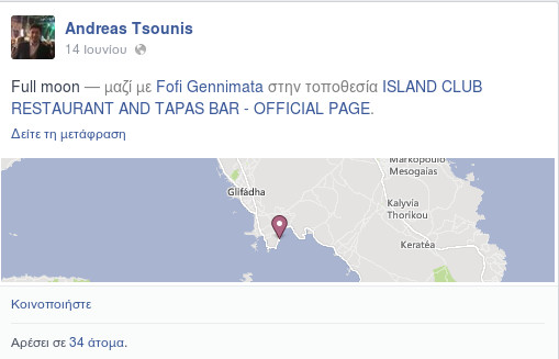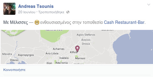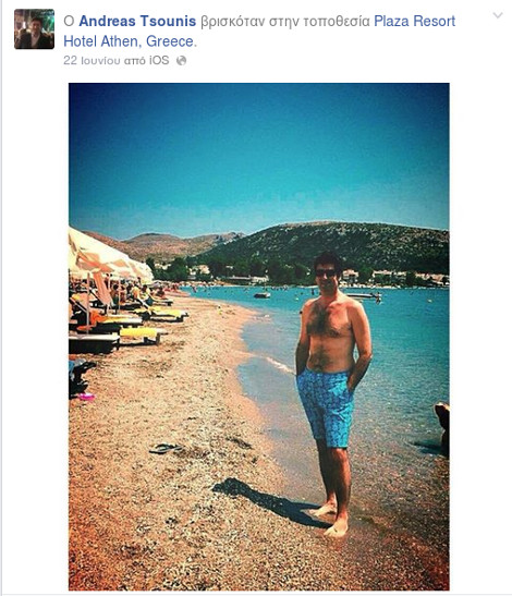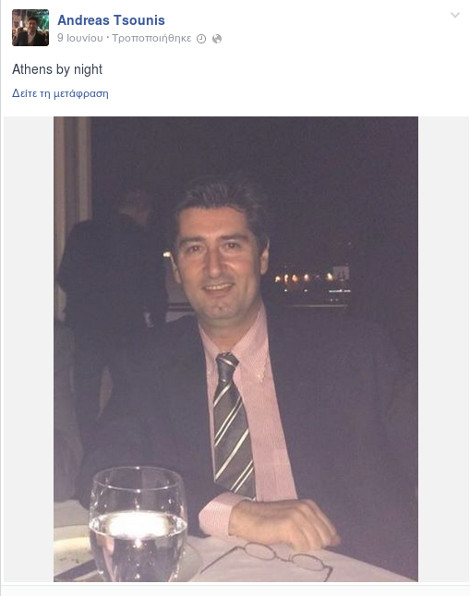 Aπό την έξοδό του με την σύζυγό του και φιλική τους παρέα στο Cash στην Κηφισιά στις 20 Ιουνίου όπου εμφανιζόταν το συγκρότημα Μέλισσες, μάλιστα, ο κ. Τσούνης είχε δημοσιεύσει και σχετικές φωτογραφίες: